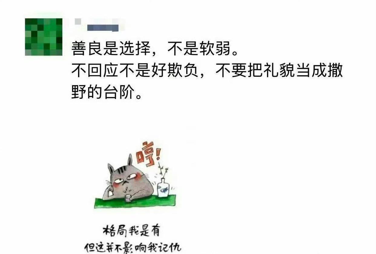 在白百何再度发声后,疑似王传君的老板朋友圈曝光,称:善良是选择,不是软弱,不回应不是好欺负,不要把礼貌当成撒野的台阶。