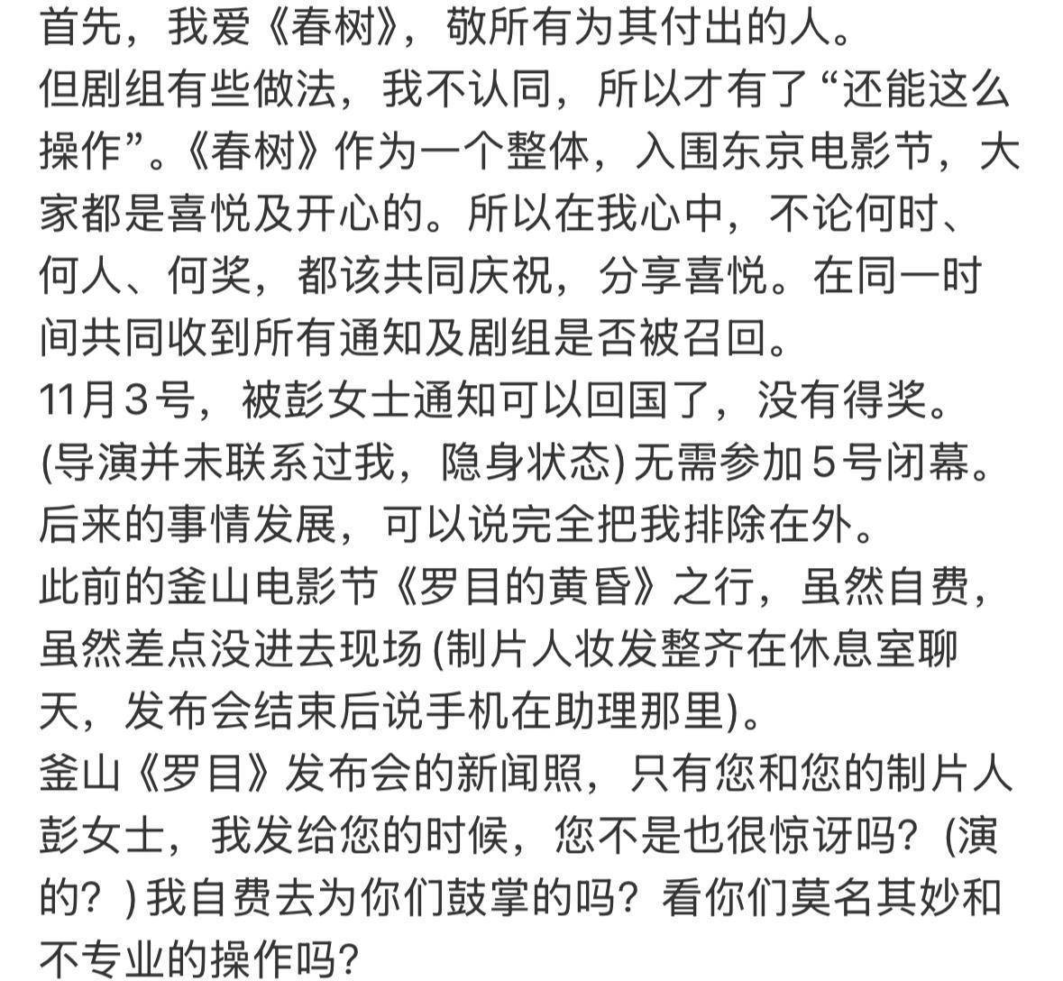 作为《春树》的女一号,却不能与剧组共进退,换谁都会生气。